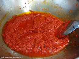 - masukkan minyak apabila minyak panas masukkan cili dan ikan bilis yang telah diblend, perlahankan api, biarkan ia masak sehingga pecah minyak, setelah itu masukkan gula, garam dan bawang besar